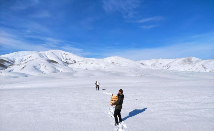 Bingöl’de kış mevsimi nedeniyle yüksek rakımlı bölgelere yaban hayvanları için yem bırakıldı.