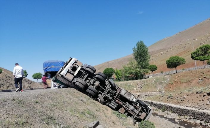 Bingöl’ün Solhan ilçesinde kamyon şarampole devrildi, sürücüsü ise kazayı hafif sıyrıklarla atlattı.