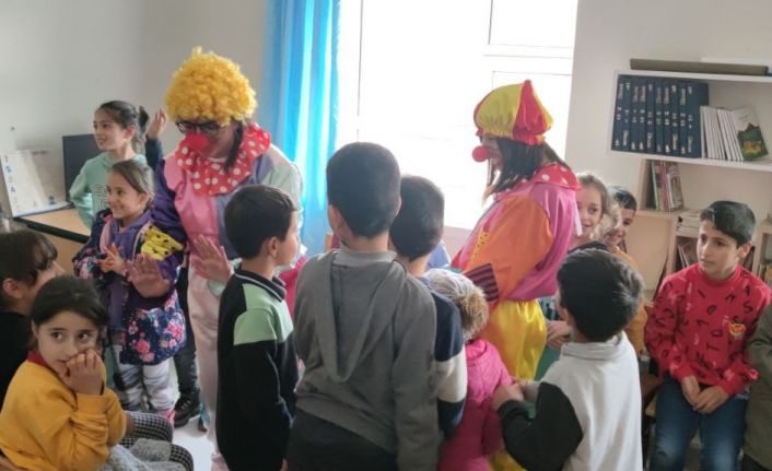 Bingöl’de Gençlik Merkezindeki gönüllüler, Kumgeçit Köyü İlkokuluna giderek çocuklara palyaço sürprizi yaptı.