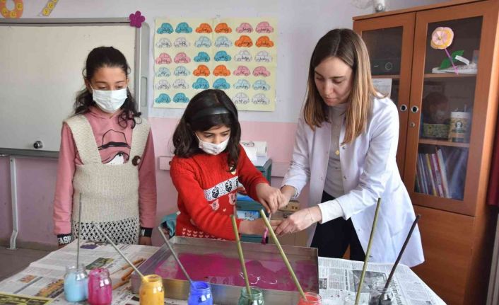 Bitlis’in Adilcevaz Kaymakamlığı, 28 köy okulundaki öğretmen ve öğrencileri ebru sanatıyla tanıştırıyor.