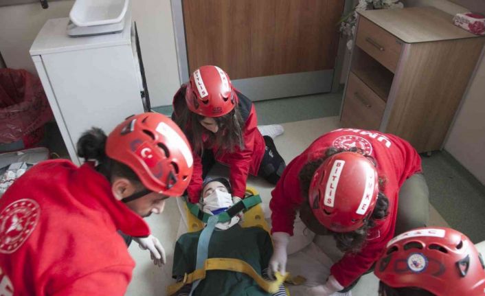 Bitlis’in Ahlat Devlet Hastanesinde yapılan deprem tatbikatı gerçeği aratmadı.