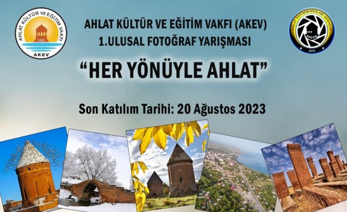 Ahlat Kültür ve Eğitim Vakfı (AKEV) tarafından düzenlenen ve Ahlat Fotoğrafçılar Derneği (AHFOD) işbirliği yürütülen “Her Yönüyle Ahlat” konulu fotoğraf yarışmasının son başvuru tarihi 20 Ağustos 2023 olarak belirlendi. İslam tarihinin en önemli miraslarından Anadolu’nun Orhun Abideleri olarak da bilinen ve dünyanın en büyük Türk-İslam Mezarlığı olan Ahlat Selçuklu Meydan Mezarlığı; tarihi kümbetler, mağara evler, hamamlar, kaleler, köprüler gibi birçok tarihi ve doğal güzellikleri içinde barındıran Ahlat ilçesinde ilk defa düzenlenecek ulusal fotoğraf yarışmasında amacının ilçenin tanıtımına katkı sunmak olduğu belirtildi.