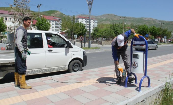 Bitlis Belediyesi Temizlik İşleri Müdürlüğü tarafından kentin ana arterlerindeki kaldırımlara sallama çöp kovası monte edilmeye başlandı.