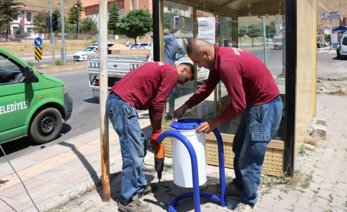 Bitlis Belediyesinden kaldırımlara çöp kovası yerleştirme çalışması