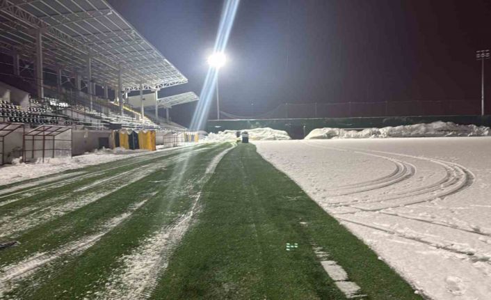 Ekipler, karşılaşmanın sorunsuz bir şekilde oynanabilmesi için sahada biriken karları temizleyerek zemini futbol oynamaya uygun hale getirmek için çalışmalarını sürdürüyor.