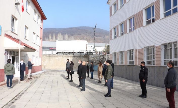 Milli Eğitim Bakanı Ziya Selçuk’un bayrak töreni çağrısı sonrası bugün saatler 10.00’u gösterirken tüm okullarda İstiklal Marşı okundu. Hizan ilçesindeki Şehit Öğretmen Abdurrahman Nafiz Özbağrıaçık Ortaokulu bahçesinde okul idarecileri ve öğretmenler bir araya gelerek İstiklal Marşı okuyup bayrak töreni gerçekleştirdi.Hizan’da bayrak töreni