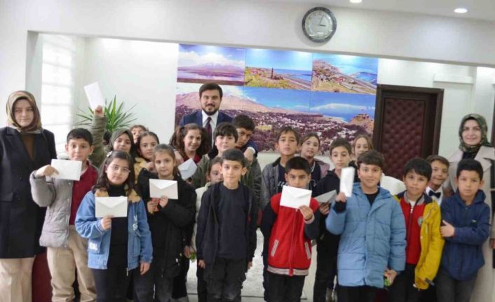 Adilcevaz Belediye Başkanı Abdullah Akbaba’yı makamında ziyaret eden Şehit Yusuf Sayan İlkokulu 3. sınıf öğrencileri Başkan Akbaba’dan da mülki idare amirlerinin görev ve sorumlulukları hakkında bilgiler alarak mektup içerisinde talep ve isteklerini sundular. Başkan Akbaba da öğrencilerin yazdığı mektupları tek tek okuyarak talep ve isteklerini yerine getireceklerinin sözünü verdi.