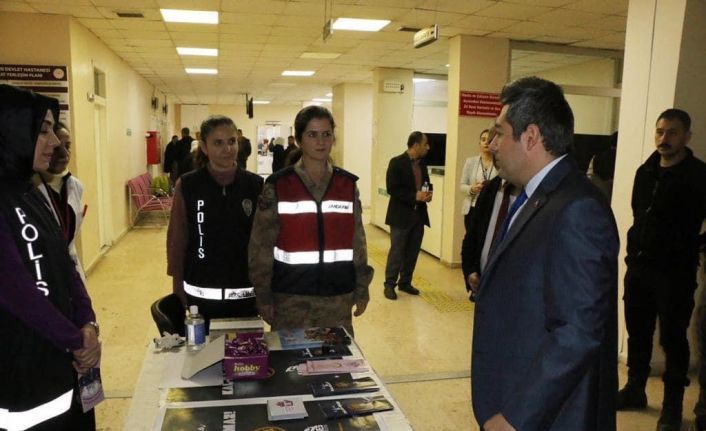 Kadına yönelik şiddete karşı farkındalık oluşturmak ve vatandaşları bilgilendirmek amacıyla Hizan Kaymakamlığı koordinasyonunda Hizan Devlet Hastanesi, İlçe Jandarma Komutanlığı ve İlçe Emniyet Müdürlüğü tarafından stant kuruldu. Standı ziyaret ederek bilgilendirme yapan Kaymakam Özçelik, “Kadına karşı şiddeti reddediyoruz. Şiddetin ortadan kalkması için kadına yönelik şiddete sıfır tolerans ilkesi ile var gücümüzle çalışıyoruz. Şiddet gören, görme ihtimali olan ve mağdur edilen kadınlarımız telefonlarına indirdikleri Kadın Acil Destek Uygulaması (KADES) uygulaması ile tek tuşla anında güvenlik güçlerimize ulaşarak yardım talebinde bulunabilirler” dedi.