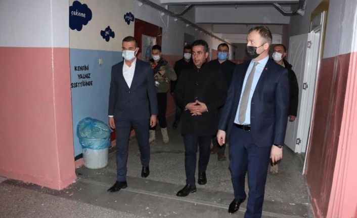İlçe Milli Eğitim Müdürü Cemalettin Güngör ile birlikte gerçekleştirdiği okul ziyaretinde idarecilerle bir araya gelen Kaymakam Muhammed İkbal Yelek, okulun eğitim öğretim çalışmaları hakkında Müdür Mehmet Cemil Tarhan’dan bilgi aldı. Okulun fiziki şartları ve yatılı kalan öğrencilerin kullandıkları alanlarda incelemelerde bulunan Kaymakam Yelek, “Çocuklarımız bizlerin geleceği, onların en iyi şekilde ve en güzel ortamda eğitim almaları için çalışmalıyız. Pandeminin kısa sürede bitmesini ve geleceğin umutları olan çocuklarımızı tekrar okul sıralarında görmeyi diliyoruz” dedi.Kaymakam Yelek’ten okul ziyareti