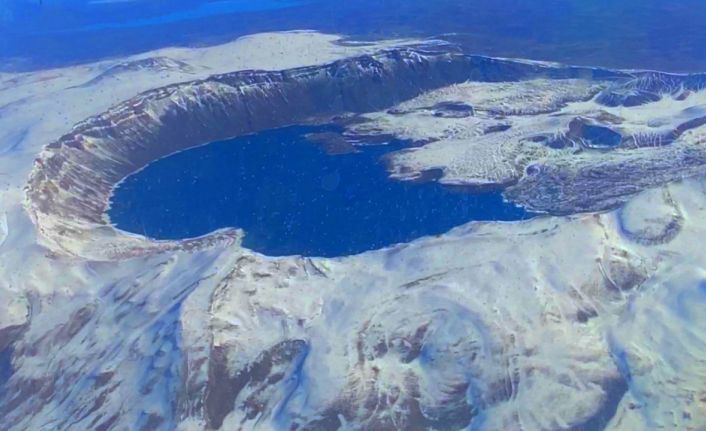 Bitlis’in Tatvan ilçesinde bulunan ve dünyanın ikinci büyük krater gölü olma özelliğine sahip Nemrut Krater Gölü havadan görüntülendi.