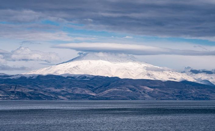 Bitlis’in Adilcevaz ilçesinde bulunan ve 4 bin 58 metre yüksekliğiyle bölgenin en görkemli dağları arasında yer alan Süphan Dağı’nın karlı zirvesinde şapka şeklinde mercek bulutu oluştu.