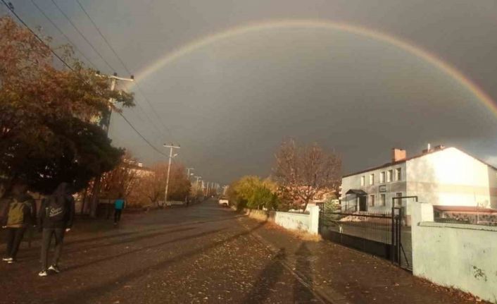 Bitlis’in Tatvan ilçesinde birkaç gündür etkili olan yağmurun ardından gökyüzünde oluşan gökkuşağı vatandaşları mest etti.
