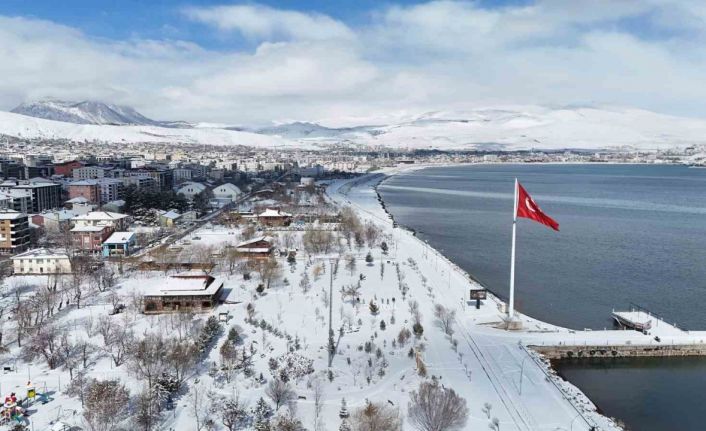 Bitlis’in Tatvan ilçesinde kar yağışından sonra ortaya çıkan kartpostallık görüntüler dron ile görüntülendi.