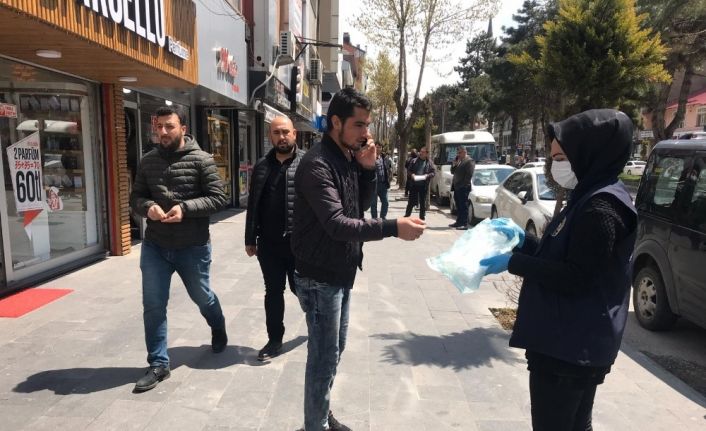 Virüs salgınına karşı önlemlerin en üst seviyeye çıkarıldığı ilçede Emniyet Müdürlüğü ve zabıta görevlilerince cadde üzerindeki vatandaşlara ve iş yerlerine maske dağıtımı yapıldı.