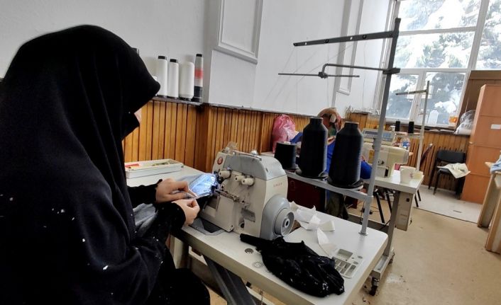 Bitlis’in Tatvan Belediyesine bağlı Kadın Kültür ve Spor Merkezinde kadınlar gönüllü olarak depremzedeler için kıyafet dikiyor.