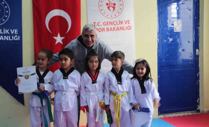 Antrenör Sezer Köksal eşliğinde eğitim alan 72 sporcu için yapılan törene Tatvan İlçe Gençlik ve Spor Müdürü Murat Ak, minik tekvandocular ve velileri katıldı.