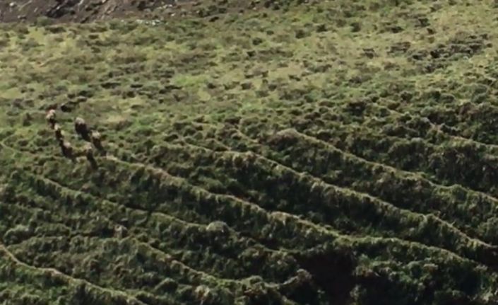 Ahlat ilçesinde dağda uçkun (yayla muzu) toplamaya çıkan vatandaşlar yaban domuzu sürüsüyle karşılaştı. Yaban domuzunu gören vatandaşlar, kısa süreli şaşkınlığın ardından cep telefonu ile kayıt yaptırdı.