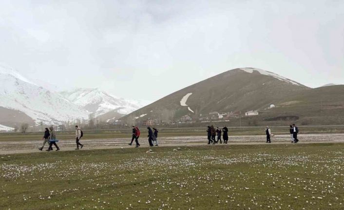 Üniversite öğrencilerinden çiğdemler arasında doğa yürüyüşü