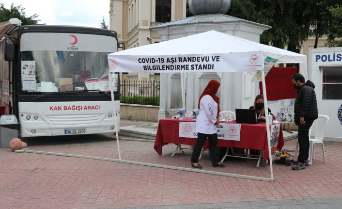 Bolu’da, vatandaşların korona virüse karşı bilinçlenmeleri ve randevu alamayanlara yardımcı olunması için stant açıldı.