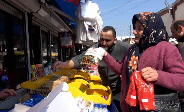 İhsaniye Mahallesi’nde pazartesi günleri kurulan pazarda bayram hareketliliği yaşanıyor. Rengarenk ambalajlarıyla tezgahları süsleyen şeker ve çikolatalara vatandaşlar ilgi gösteriyor. Pazarda bayram şekerlerinin kilogramı ortalama 300 liradan satışa sunulurken, çikolataların kilogram fiyatı ise 750 liradan alıcı buluyor. Özellikle çocukların ilgisini çeken ve bayramda misafirlere ikram edilmek üzere alınan ürünler, farklı renk ve çeşitleriyle pazar tezgahlarını hareketlendiriyor.