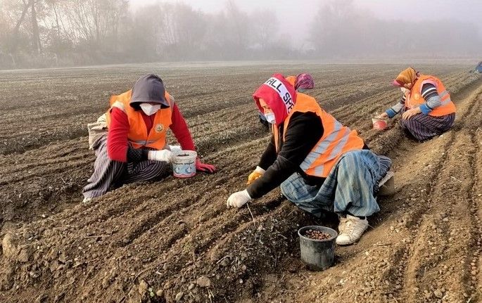Bolu’da 2021 yılı fidan üretim programı kapsamında yer alan Türk Fındığı tohumlarının yastıklara ekimi devam ediyor.