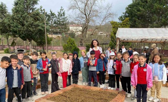 Bolu’da Taşkesti İlkokulu’nda minikler, siyah nohut ve mor patates tohumlarını toprakla buluşturdu.