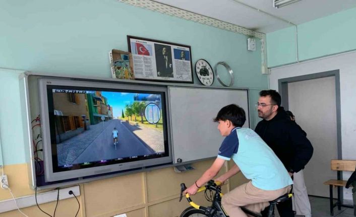 Öğrenciler bisiklet simülasyonuyla sanal ortamda pedal çevirdiler