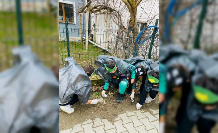 BOLU (İHA) – Bolu’da "Çevreye Duyarlıyım" projesine destek veren ortaokul öğrencileri, okulun bulunduğu mahalledeki çöpleri topladı.