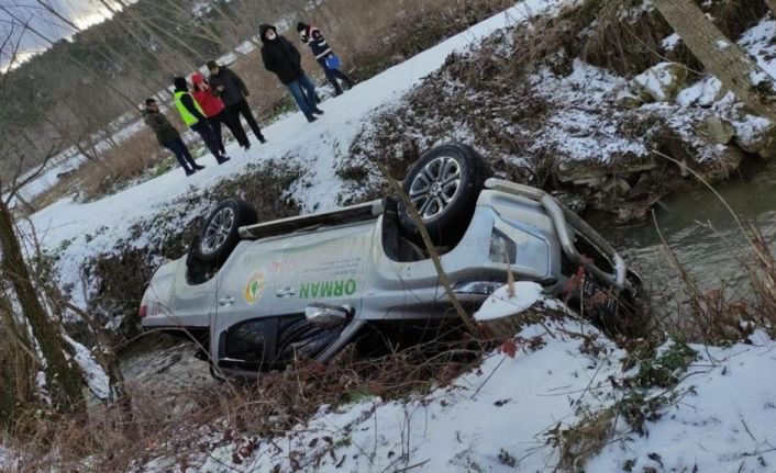 Orman muhafaza memurlarını taşıyan araç şarampole yuvarlandı: 2 yaralı