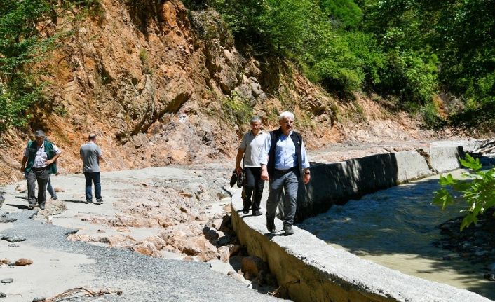 Vali Kılıç, sel sebebiyle çöken yol ve köprüyü inceledi