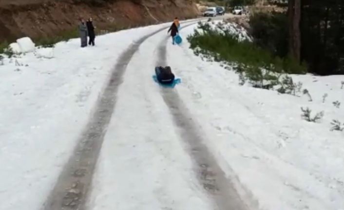 Burdur’un Gölhisar ilçesinde bulunan Böğrüdelik Yaylası mesire alanına giderek aileleri ile keyifli vakit geçirmek isteyen vatandaşlar buzlanma nedeniyle ilerleyemedi. Ebeveynler oldukları alanın tadını çıkarırken, çocuklar buzlanan yolda kayarak eğlendi.