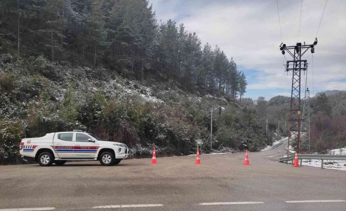Burdur’da kar yağışı ve buzlanma riski nedeniyle Bucak ilçesine bağlı Çobanpınar Köyü yolu araç girişine kapatıldı.