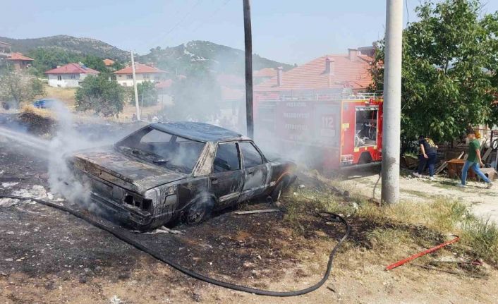 Burdur’un Yeşilova ilçesinde park halindeki otomobil, yangında kullanılamaz hale geldi.