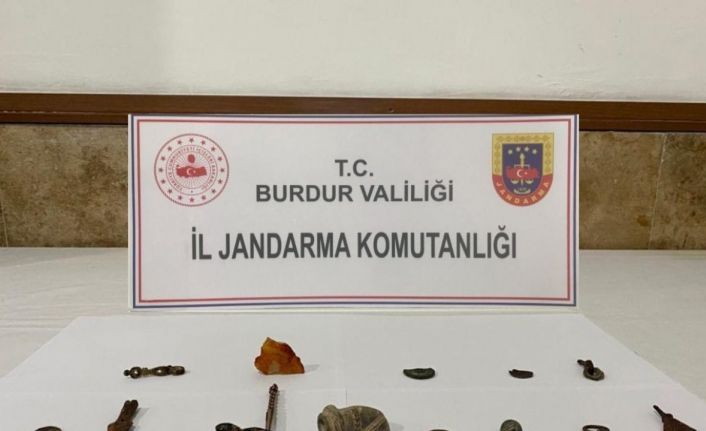 Burdur’da jandarma ekipleri 2 şüphelinin tarihi eser kaçakçılığı yapacağı bilgisi üzerine düzenlendiği operasyonda 13 adet tarihi eser ele geçirdi.