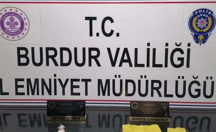 Burdur İl Emniyet Müdürlüğüne bağlı ekipler tarafından 24 Kasım günü il merkezinde durdurulan araç ve araçta bulunan F.D. isimli şahsın üzerinde yapılan aramada sentetik kannabinoid enjekte edildiği değerlendirilen yaklaşık 1900 kullanımlık 4 adet kâğıt parçası ve 10,50 gram metamfetamin ele geçirildi.