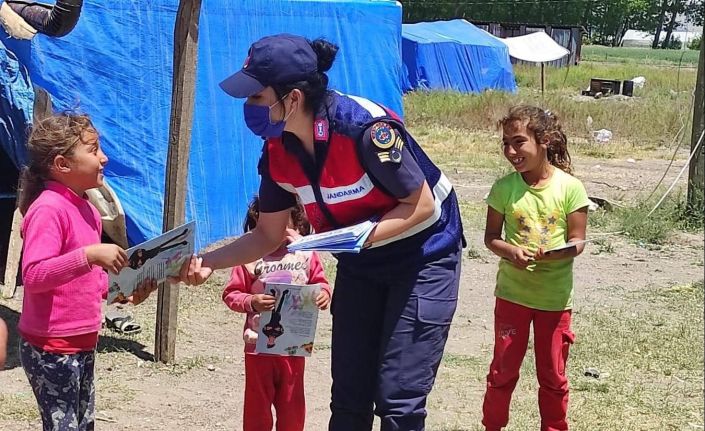 Jandarma hem kadınları bilgilendirdi, hem çocukları sevindirdi