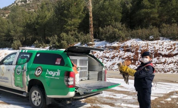 Burdur’da kanadı kırık kızıl şahini jandarma ekipleri kurtardı.