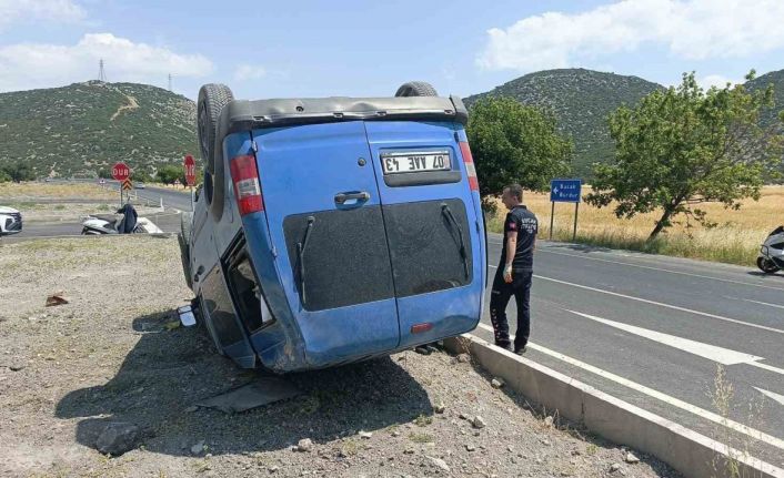 Takla atan araç içerisinde sıkışan sürücü itfaiye ekipleri tarafından çıkarıldı