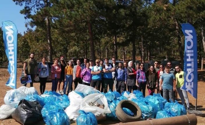 Bursa’da bir spor mağazası çalışanları ve gönüllüler, 21 Eylül Dünya Temizlik Gününde Dağyenice göletinin çevresini çöplerden arındırdı.