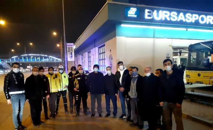 Bursa’da AK Parti Osmangazi İlçe Gençlik Kolları Başkanı Burak Çağatay Muti ve yönetim kurulu üyeleri, uygulama noktasında görev yapan emniyet mensuplarına kandil simidi ikramında bulundu.