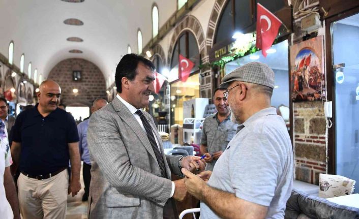 Osmangazi Belediye Başkanı Mustafa Dündar, Kurban Bayramı öncesinde Tarihi Çarşı ve Hanlar Bölgesi’ni ziyaret ederek esnaf ve alışveriş yapan vatandaşlar ile bayramlaştı.