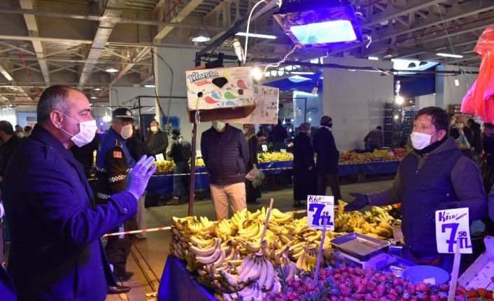 Gemlik Belediye Başkanı Mehmet Uğur Sertaslan, kapalı pazar yerini denetiminde bir araya geldiği pazarcı esnafını korona virüsü tedbirleri kapsamında alınan kurallara uymaya davet etti. Sertaslan, aksi yönde davranan esnafın tezgâhlarının kapatılacağının altını çizdi.