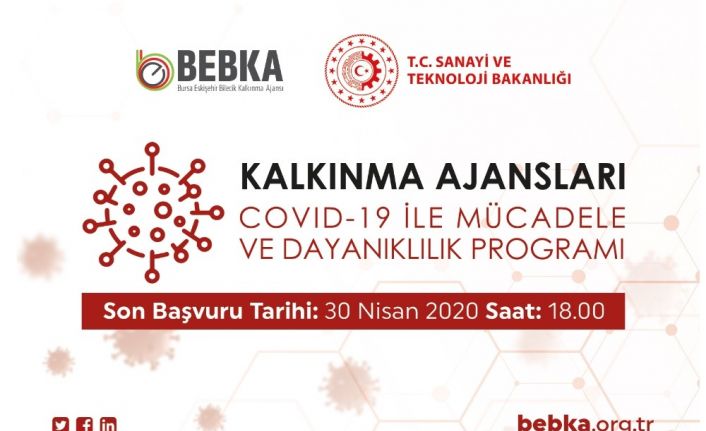 Sanayi ve Teknoloji Bakanlığı koordinasyonunda bölgedeki kurum ve kuruluşlara yönelik mali ve teknik destek faaliyetleri yürüten Bursa Eskişehir Bilecik Kalkınma Ajansı (BEBKA), Dünya Sağlık Örgütü tarafından küresel salgın hastalık olarak ilan edilen ve Türkiye için de ciddi tehdit oluşturan covid-19 ile mücadeleye katkı sağlayacak ve salgının etkilerinin azaltılmasına yönelik acil çözüm sunan projelerin desteklenmesi amacıyla proje çağrısına çıktı. Uygun görülen projelere toplamda 15 milyon TL hibe verilecek.