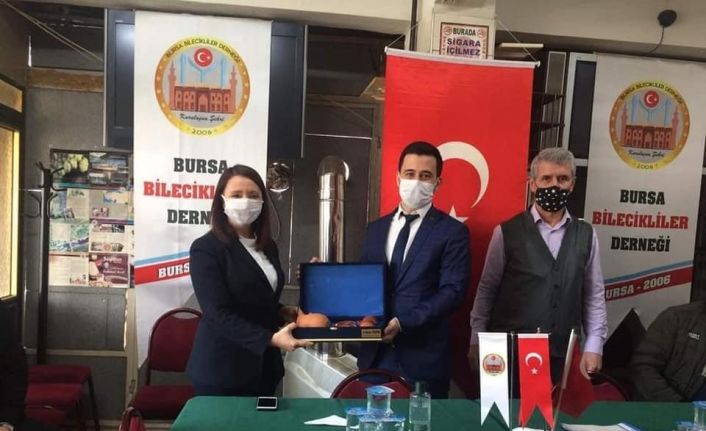 Bursa Bilecikliler Derneği Olağan Genel Kurulu, Yıldırım ilçesi Ortabağlar Mahallesinde bulunan dernek binasında gerçekleştirildi. Bilecik Pazaryeri Belediye Başkanı Zekiye Tekin’inde bulunduğu genel kurula üyeler tek liste ile gitti. Korona virüs sebebiyle üye katılımına sınırlama getirildiği genel kurulda yeni yönetime gelenler arasında yapılan toplantıda Erdoğan Mısırlı dernek başkanlığına getirildi. Pazaryeri Belediye Başkanı Zekiye Tekin, yeni yönetim kurulunda yer alan eski Başkan Avukat Haldun Filizli’ye dernek ile ilgili çalışmalarından dolayı özel Kınık Köyüne ait yöresel vazo hediye ederek, yeni başkan Erdoğan Mısırlı’ya hayırlı olsun dileğinde bulundu.