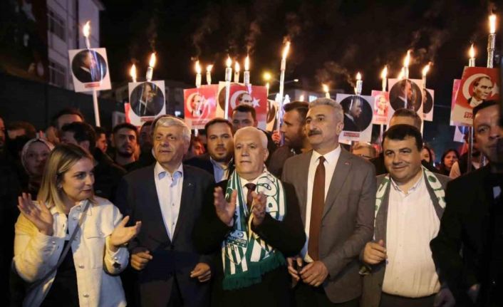 Bursa Büyükşehir Belediye Başkan Adayı Mustafa Bozbey, Orhangazi’de meşalelerle karşılandı. Şehirde uzun bir Türk bayrağı ile fener alayı yapılarak halk selamlandı.