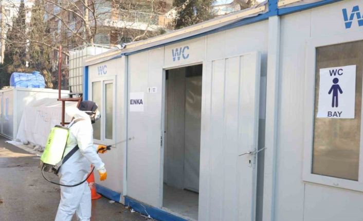 Deremde büyük hasar gören Hatay’da yaraların sarılması için canla başla çalışan Bursa Büyükşehir Belediyesi, bölgede kurduğu konteyner kentler ile ihtiyaç noktalarının ilaçlama çalışmalarını da tüm hızıyla sürdürüyor.
