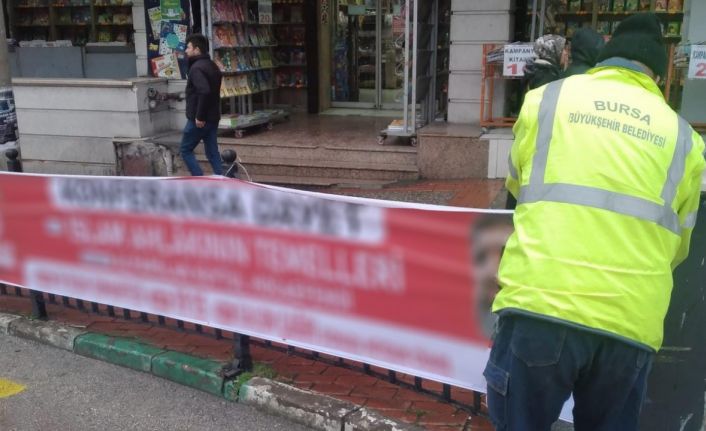 Bursa Büyükşehir Belediyesi, kenti daha estetik ve yaşanabilir hale getirme çalışmaları kapsamında ana arterlerdeki izinsiz afişleri tek tek tespit ederek kaldırdı.