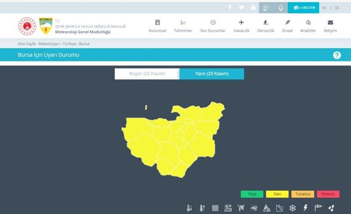 Meteoroloji Genel Müdürlüğü tarafından Bursa için sarı uyarı verildi.