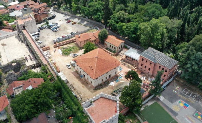 Büyükşehir Belediyesi tarafından rekonstrüksiyon çalışmaları sürdürülen 4 asırlık Bursa Mevlevihanesi’nin son yapısı olan Haremlik-Selamlık binasında kaba inşaat tamamlanırken, semahane bölümünde ahşap montaj işçilikleri hızla devam ediyor.