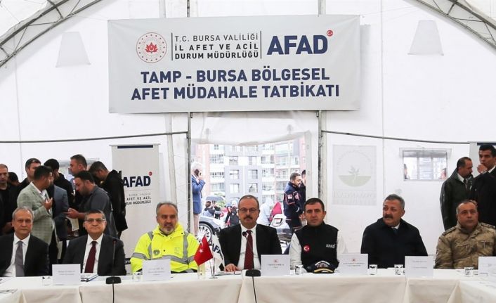 Tatbikatın gerçekleştiği alanı ziyaret eden Bursa Valisi Yakup Canbolat, ekiplerin görev aldığı çadırları tek tek gezerek bilgi aldı. Tatbikatın gece de süreceği belirtildi.